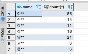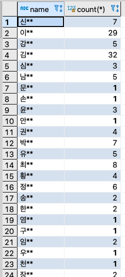 2. Gmail을 사용하는 성씨별 회원수 세어보기
