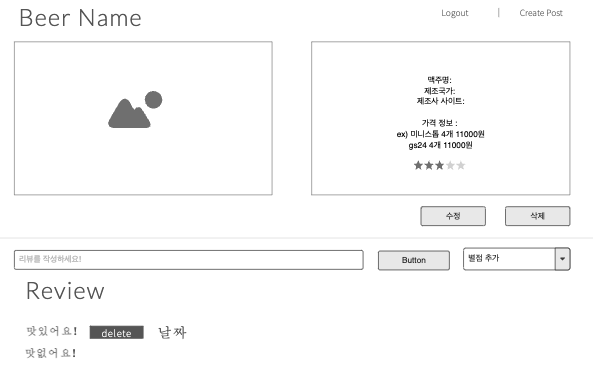 간단설명 : 편의점 맥주 종류를 한 눈에 볼 수 있고 리뷰와 별점 등을 매길 수 있는 맥주 정보 커뮤니티 입니다.